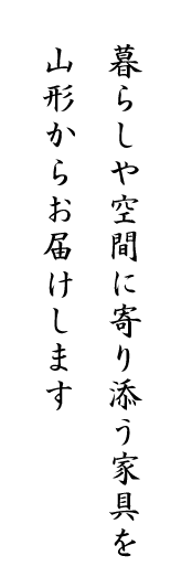 私たちは1952年の創業以来、山形市に根差し、家具づくりを続けてまいりました。特注家具の製造を通じて、商業施設や店舗、オフィス、住宅、公共施設など、さまざまな空間づくりのお手伝いをしています。これからも、一つひとつのご依頼に丁寧に向き合い、永く愛される家具をお届けしてまいります。